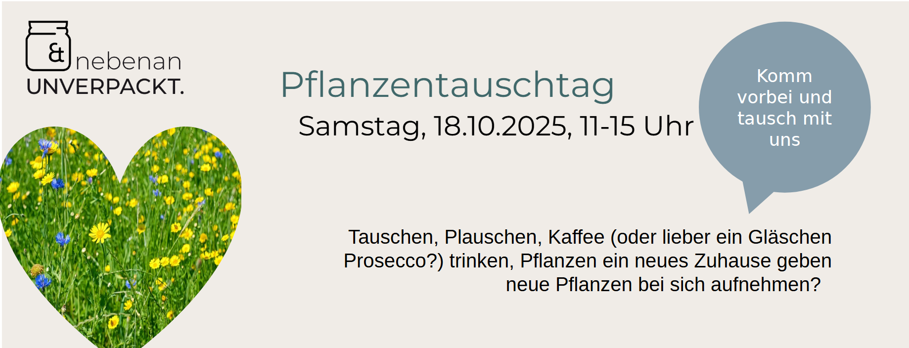 Nebenan & Unverpackt Laden Willibaldstr. 18, München, DeutschlandHerbststauden, Frühlingszwiebeln, Kräuter, Bäume, Wasserpflanzen – alles was der Garten hergeben oder haben will, könnt ihr hier tauschen und eintauschen. Ganz ohne Zwang, aber mit viel Spaß und auch bei nicht ganz so grünem Daumen. Übrigens: Auch Pflanzen für Innenräume sollen hier schon neue Familien gefunden haben. Wir sorgen für gute Stimmung, hübsche Deko, einen […]